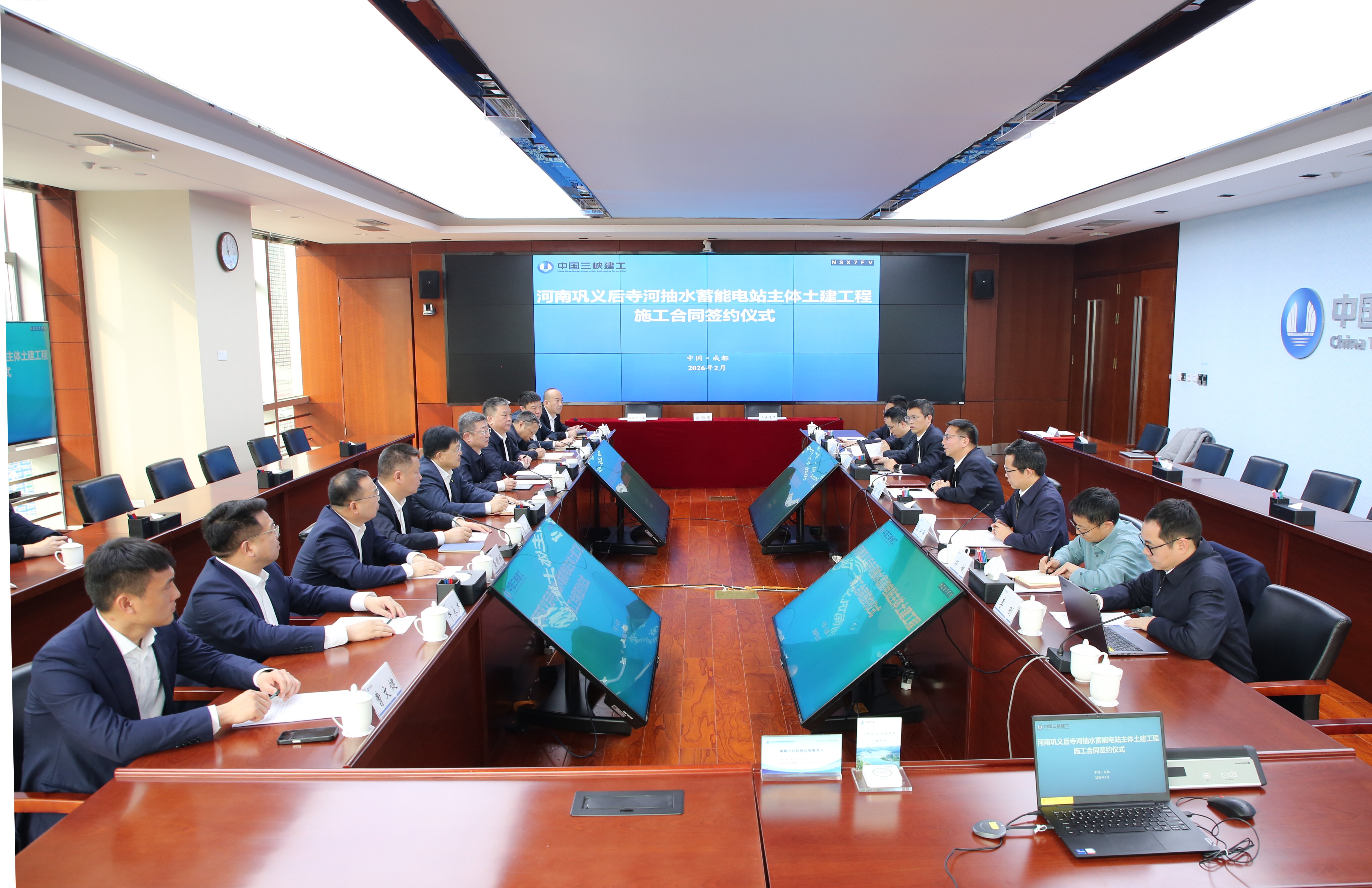 2月3日,河南巩义后寺河抽水蓄能电站主体土建工程施工合同签约仪式在成都三峡大厦举行。公司党委书记、董事长李峥,公司党委委员、副总经理贺祝一行出席签约仪式。五公司党委书记、总经理陈猛代表公司与三峡建工签署合同。