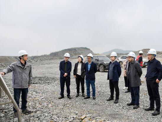 李平一行深入到铜梁项目生产现场,实地考察了项目B包产品销售、二期生产线建设运营、后期矿权规划等进展情况,与现场相关人员进行了交流。