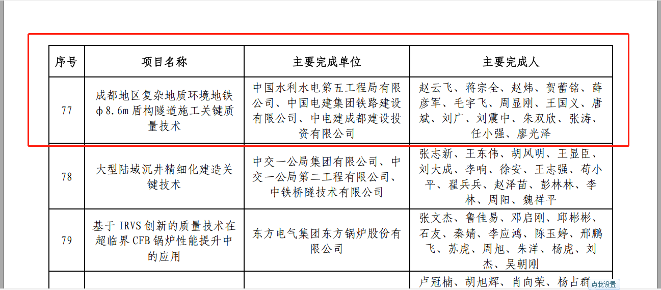 日前,从中国质量协会获悉,公司申报的《成都地区复杂地质环境地铁φ8.6m盾构隧道施工关键质量技术》课题凭借在复杂地质环境盾构施工质量管控领域的重大突破,成功斩获中国质量协会质量技术奖二等奖,为公司在地铁施工技术领域再添一项重量级荣誉。