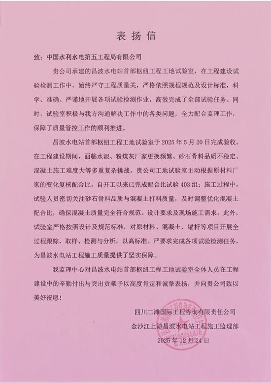 四川二滩国际工程咨询有限责任公司表扬信