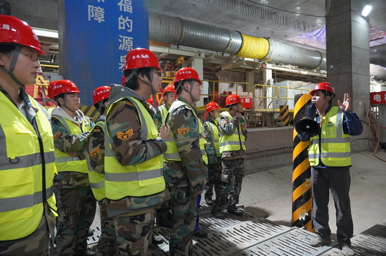 随后观摩团一行深入秦皇寺站工地现场,“零距离”参观地铁工程施工建设。在项目盾构负责人的引导下,通过展板系统全面了解了成都轨道交通规划、成眉线线路规划、盾构施工工艺工法、设备构造及原理等。地面参观结束后参观了地下盾构机实物,在现场技术“师傅”的带领下有序下井进入隧道作业面,近距离观摩盾构机掘进作业实况,详细了解盾构机刀盘运转、盾体密封、管片预制拼装、同步注浆等核心工艺,重点探究了成眉线隧道防水构造、围岩支护技术等与线路安全密切相关的工程细节,现场不时响起提问与讨论声。整场参观过程中,师生们始终保持高昂热情,一边认真聆听技术人员的专业讲解,一边用手机记录关键知识点,围绕成眉线主体结构稳定性控制、复杂地质条件下施工应对方案、绿色施工技术应用等问题踊跃发问。项目盾构负责人结合工程实例,逐一细致解答,并分享了成眉线建设中攻克技术难题、保障施工安全的实践经验,现场互动氛围热烈。