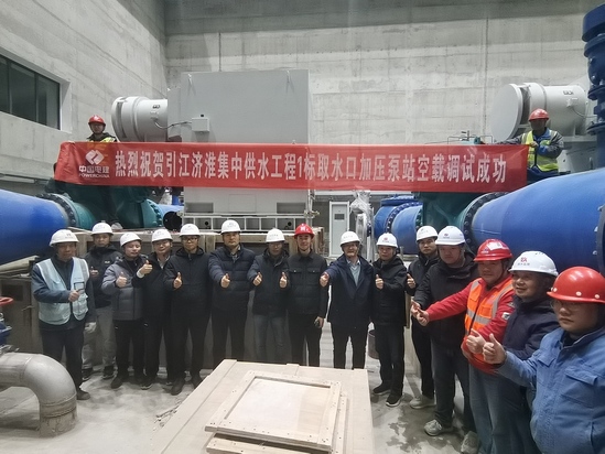 取水口加压站承担了太和、界首、临泉三地供水任务。项目工程临泉界首供水部分设计流量6.20立方米每秒,扬程58.16米;太和供水部分设计流量4.30立方米每秒,扬程19.52米,两座泵房总装机容量8000千瓦。在供电系统送电后,项目团队立即开展取水口加压站空载调试。检测结果显示,所有泵组电机运行平稳,振动、噪音、轴承温升等关键指标均符合规范要求,自动化监控系统运行正常。