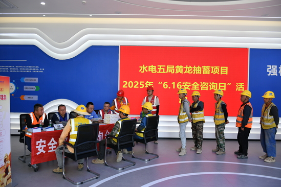 2025年6月16日下午,水电五局黄龙项目在泄洪放空洞和教培中心成功举办“安全宣传咨询日”活动。本次活动紧密围绕“人人讲安全、个个会应急——查找身边安全隐患”的安全生产月主题,通过形式多样的沉浸式学习与互动体验,旨在全面提升全员安全素养与应急能力,为项目进入攻坚关键期筑牢坚实的安全基石。