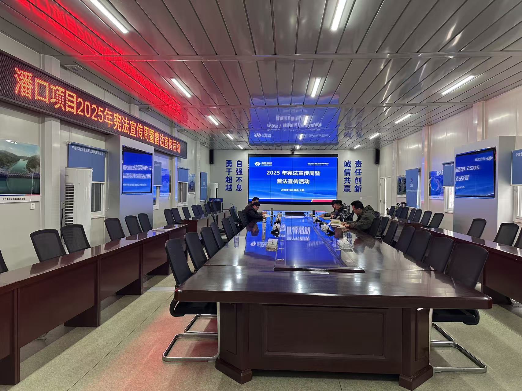 深化理论学习,筑牢思想根基。济南项目组织全体人员集中学习习近平总书记《坚定不移走中国特色社会主义道路 为全面建设社会主义现代化国家提供有力法治保障》的重要论述,重点解读《中华人民共和国法治宣传教育法》中的“公民终身法治教育”“谁执法谁普法”等关键制度,明晰项目建设“尊法、学法、守法、用法”实践路径;磐安项目聚焦宪法知识与新时代法治建设,学习习近平总书记在中央全面依法治国工作会议上的重要讲话,通过《宪法知识竞赛题库》问答研讨,巩固了宪法基础知识;潘口项目党支部副书记结合项目实际,深入解读,引领项目员工学习习近平总书记在中央全面依法治国工作会议上提出的“11 个坚持”,让员工们充分认识到依法履职的重要性;天津项目依托线上微信群、五局学堂及线下“党建早课堂”平台,系统解读党的二十届四中全会精神、《中华人民共和国宪法》等内容,以案例剖析深化理解,构建“党建引路、法治同行”良好格局。
