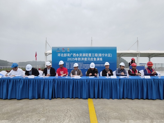 4月8日上午,环北广西B1标项目组织开展2025年防洪度汛应急演练。环北工程业主、设计、监理及施工A2、A3、B2、B6、大庄支线标段相关代表现场观摩。