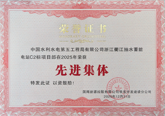 近日,水电五局衢江项目团队凭借扎实过硬的综合管理能力与持续稳定的安全业绩,在国网新源华东开发建设分公司2026年度质量安全座谈会上喜获表彰,获评2025年度“先进集体”荣誉称号,并连续两年获评“无违章工区”荣誉称号,4名职工获评“无违章个人”荣誉称号。
