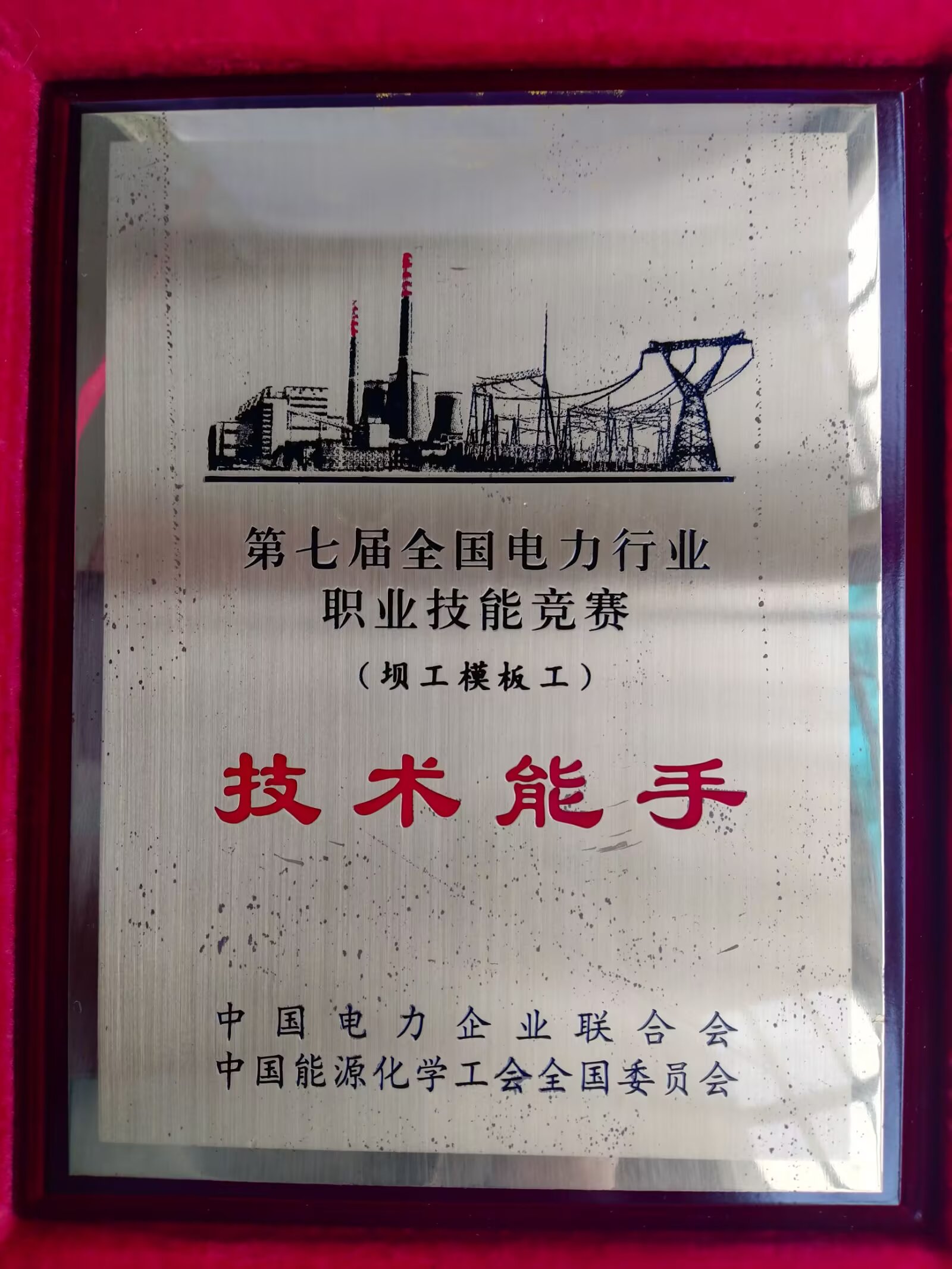 2009年,陈历新转入甘肃苗家坝水电站项目,负责钢筋及木模加工制作。这是一份更考验技术功底的工作,他逐字逐句钻研图纸,连钢筋的弯钩角度都要对照规范反复核对。“那段时间,梦里都是钢筋的型号和模板的尺寸。”他笑称。正是这份钻劲,让他在中国能源化学工会全国委员会举办的第七届全国电力行业职业技能竞赛中脱颖而出,获得“坝工模板工技术能手”称号。站在领奖台上,他手里的奖状沉甸甸的——那是对无数个日夜钻研的最好回馈。