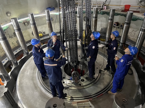 中国电建蓝色的安全帽下,每一张脸庞都专注而认真。工具与部件的碰撞声、桥机的运行声、技术交流的讨论声,交织成一首充满力量的劳动交响曲。检修工人们呵出的白气,迅速融进这忙碌的热流中。汗水从额角滑落,在沾着油污的工作服上留下深色的印记,却没有人在意。在这里,初冬的寒意被昂扬的热情完全驱散,每一个身影都在诉说着责任与担当。眼前这幅热火朝天的画面,让场外的寒意黯然失色。这片忙碌,不仅是为了让机组焕发新的活力,更是为了即将到来的冬日,积蓄温暖与光明。