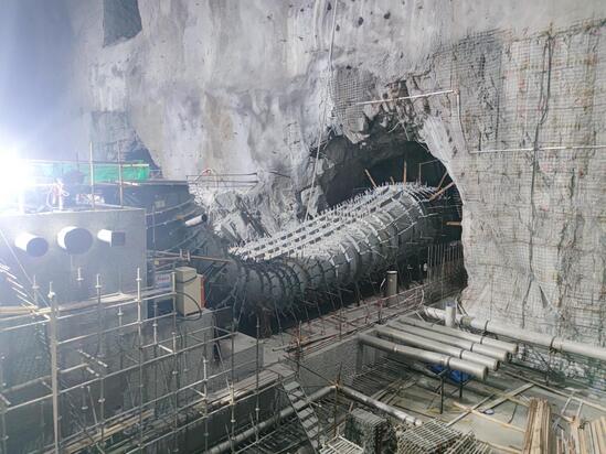 自1号机组尾水管首节吊装就位,至此开启了“五局安装”时刻。尾水管长度为21米,共9个单元节。当尾水管安装完成,安装铁军用这个重78.3吨的庞然大物,以提前5天实现2024年第一个节点目标的佳绩,于地下厂房内精心打造出首个亮眼的“作品”,初显锋芒。
