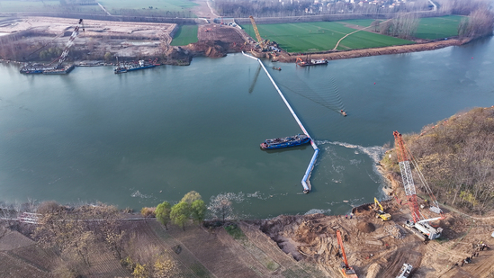 “沉管就像在水下‘穿针’,偏差过大上下游管口就无法合拢。”吊点选在哪?每个阶段注多少水?吊力应该控制在多少吨?管子的挠度允许是多少……一系列影响管道下沉的参数都需要进行全面考量。首次沉管作业时,河面寒风夹杂着水汽扑面而来,施工人员裹紧工装,手中的对讲机不时传来指令与回应。作业人员轮班值守,眼睛熬得通红,每一次姿态调整都要反复核对数据,每一次指令下达都要精准无误。36小时后,钢管最终平稳着床,轴线偏差得到有效控制,经权威检测,沉管对接渗漏量为零,远优于水利工程验收标准,成功实现“水下无缝衔接”的技术突破。