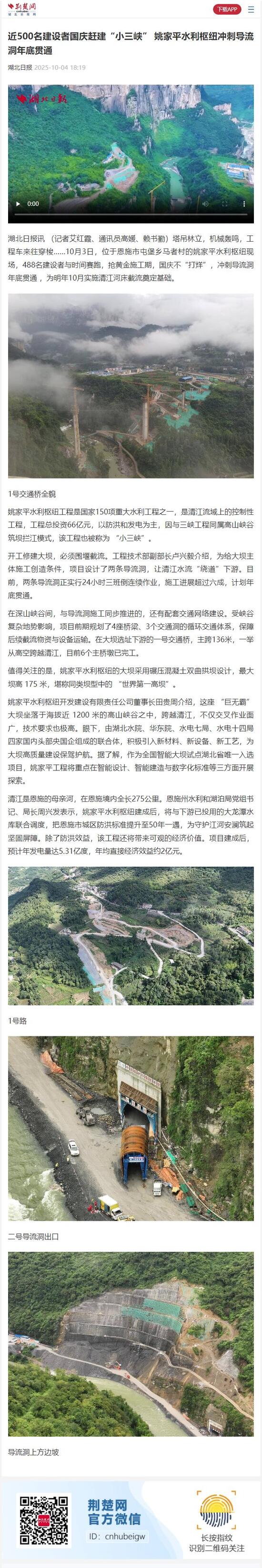 姚家平水利枢纽开发建设有限责任公司董事长田贵周介绍,这座 “巨无霸” 大坝坐落于海拔近 1200 米的高山峡谷之中,跨越清江,不仅交叉作业面广,技术要求也极高。眼下,由湖北水院、华东院、水电七局、水电十四局四家国内头部央国企组成的联合体,积极引入新材料、新设备、新工艺,为大坝高质量建设保驾护航。据了解,作为全国智能大坝试点湖北省唯一入选项目,姚家平工程将重点在智能设计、智能建造与数字化标准等三方面开展探索。