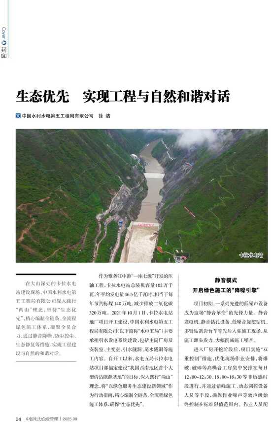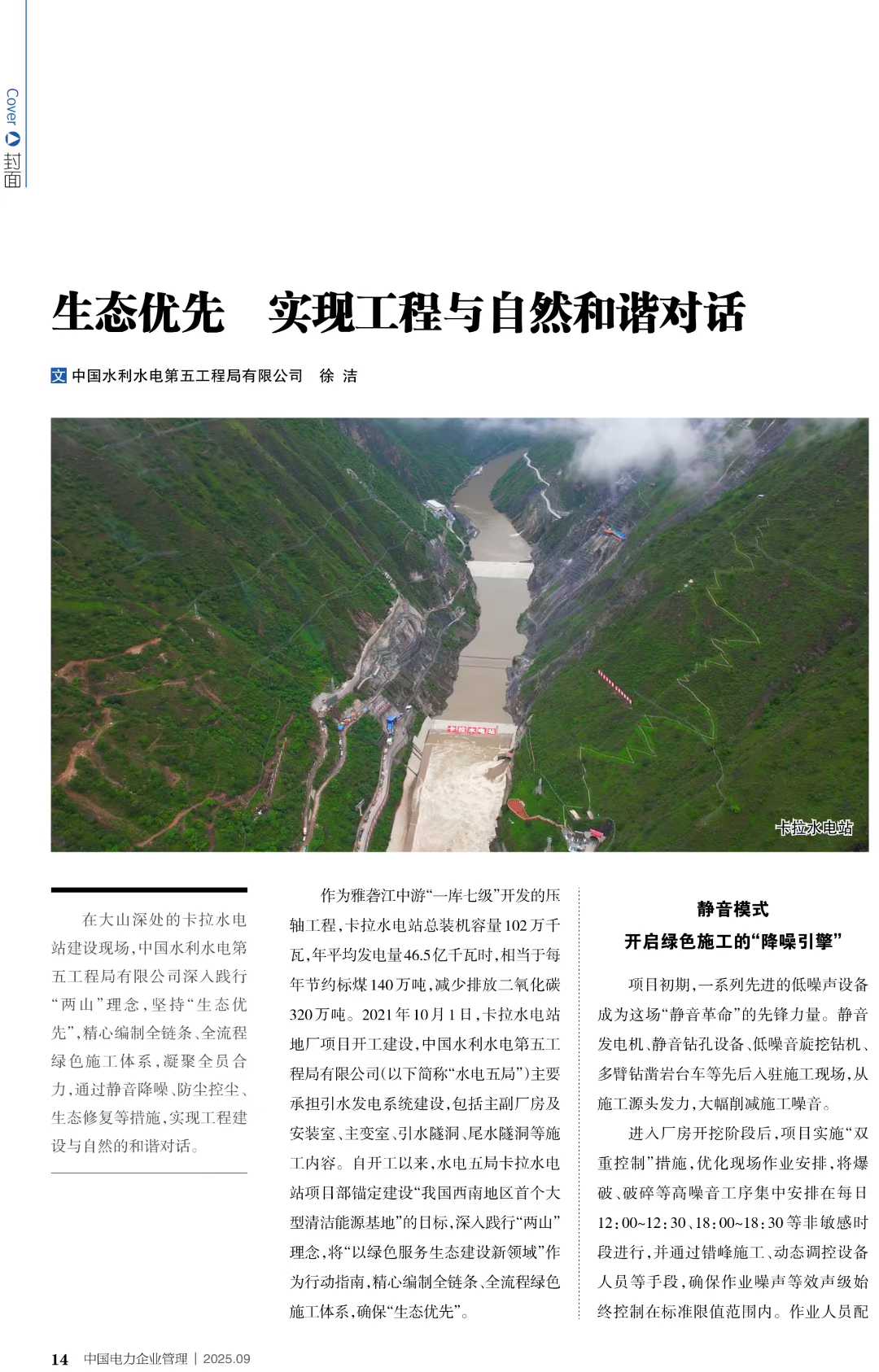 【中国电力企业管理杂志】生态优先 实现工程与自然和谐对话