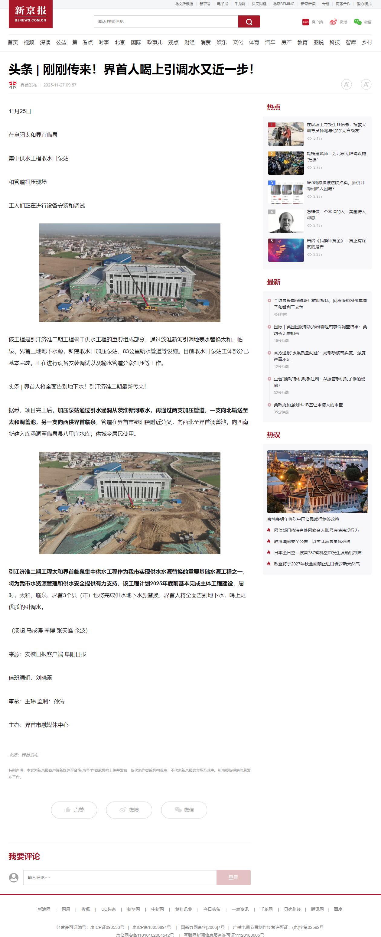 头条 |界首人将全面告别地下水!引江济淮二期最新传来!