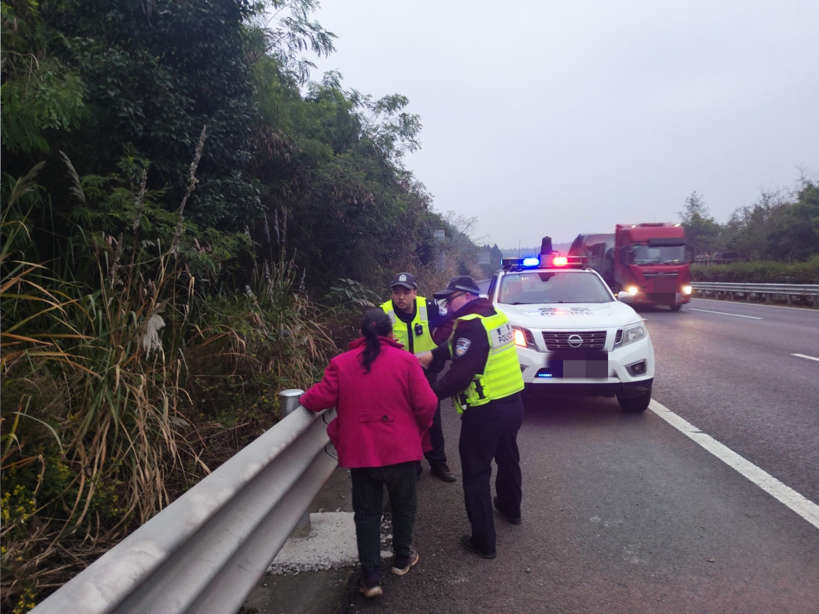 12月8日,中电建渝蓉高速运营管理部路巡团队与高速交警火速联动,成功处置一起七旬老人误闯高速的紧急险情。经过1小时的暖心接力,老人被安全护送至家属身边,用高效处置与温情服务彰显了中电建渝蓉高速运营管理部路巡人员的责任与担当。