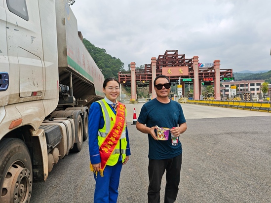当日傍晚,李师傅驾驶六型货车从元阳驶往昆明,途经龙岔收费站时车辆风机突发故障,无法继续行驶。现场当班人员发现情况后,立即临时封闭事故车道,迅速开启备用车道保障通行,规范摆放反光锥桶设置安全区域,并引导车辆缓行至指定位置停靠。同时,工作人员第一时间将现场情况上报监控中心及路巡部门,详细说明故障类型与位置,为后续专业救援争取了宝贵时间。