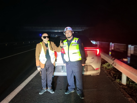 司机试驾确认无误后,紧握路巡队员的手连声道谢:“太感谢你们了!深夜高速遇故障本来特别着急,还好有你们及时帮忙,还一直提醒我注意安全!”
