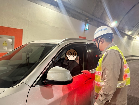 当日下午3时许,项目工作人员按照既定计划开展隧道安全排查工作,行至隧道中段时,发现一辆开启双闪警示灯的小轿车违规停靠在应急车道内,且未设置任何警示标志,在车流穿梭的隧道环境中存在极大安全隐患。工作人员第一时间作出反应,规范摆放安全警示墩,划定防护区域,随即上前查看情况。该司乘降下车窗后向工作人员求助,表明自己在行驶过程中突然出现头晕、乏力等症状,疑似低血糖发作,已无法继续驾驶。