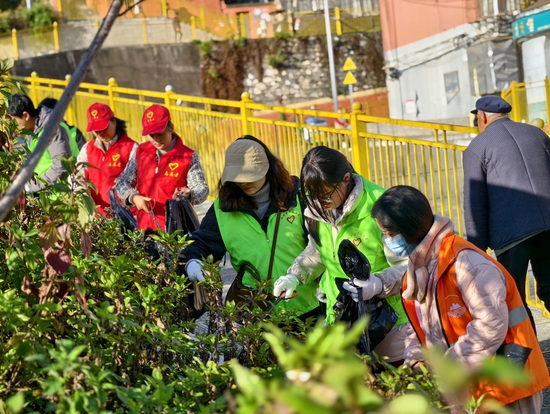 活动为期半天,志愿者们身着统一标识的“红马甲”,携带专业清洁工具,分组对社区主干道、绿化带、卫生死角等公共区域展开系统性清理。大家手持工具,细致清除墙面非法张贴物,认真捡拾路面及花坛中的散落垃圾,搬运堆积杂物,并对卫生死角进行了彻底整治。
