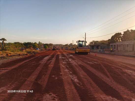 贝宁棉花之路项目于2025年3月份完成路基土方填筑72公里,完成比率99.3%,完成垫层施工和精品红土粒料底基层施工69公里,完成比率95.2%,未完成部分为转盘及城镇段。4月份进入雨季后,考虑到频繁降水对土方施工影响较大,项目部统筹资源集中精力进行级配碎石和GB沥青混凝土摊铺。11月份进入旱季后,在已完成大部分级配碎石和GB沥青混凝土摊铺工作的基础上,调配少量设备,对未完成土方工程进行收尾。11月22日18点,随着压路机完成最后一次碾压,标志着项目土方施工已完成全部。后续,项目将集中全部资源加快推进级配碎石和GB沥青混凝土摊铺工作。