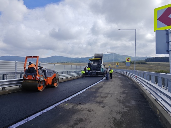 10月7日,在监理、当地工程师、中方员工共同参与下,罗马尼亚绕城公路项目正式开始了桥梁第二层沥青混凝土摊铺工作。