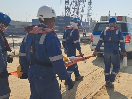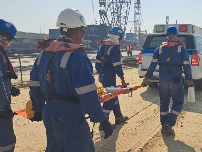11月18日,沙特国王港项目P4包在2号指码头组织开展了一场逼真的溺水应急救援实战演练。本次演练由项目安全经理统一指挥,各职能部门及施工班组共50余人参加。本次演练旨在进一步增强全员安全意识、筑牢临海作业安全防线、全面提升应对突发事件的协同作战与应急处置能力。