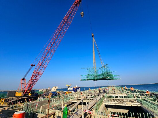 为提高施工效率,项目团队对施工工艺进行了大胆创新。一改传统的现场直接安装钢筋方式,转而采用预制场提前预制,再由浮吊船吊装的方案。这一优化方案大大缩短了施工周期,提升了整体效率。