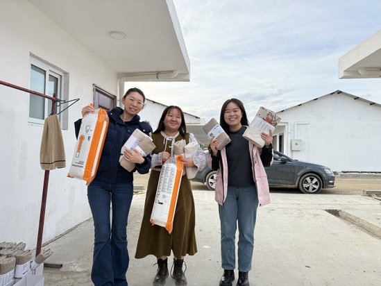"棉被到了!"职工们抱着棉被笑开了花:“项目太贴心了!”“这下晚上不用怕冷了!”